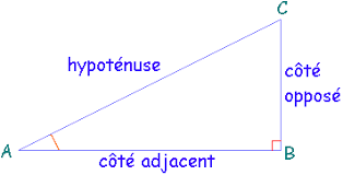 1) Hypoténuse, côté adjacent et côté opposé.