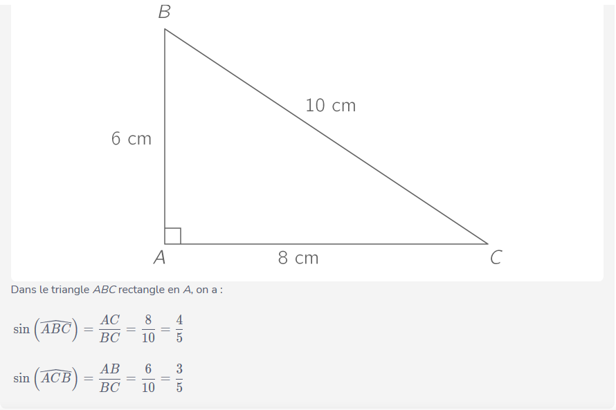 b) Dans un triangle rectangle, le sinus d'un angle aigu est égal à