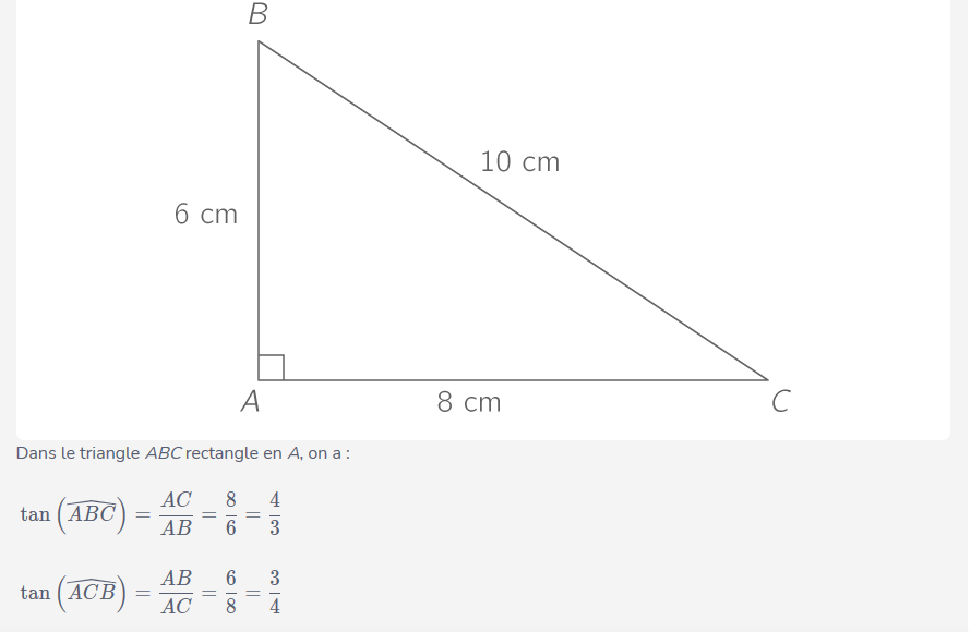 c) Dans un triangle rectangle, la tangente d'un angle aigu est égale à