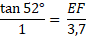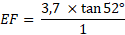 Dans le triangle EFD rectangle en F, calculons la mesure du segment rouge [EF] (arrondi au millimètre) sachant que DF = 3,7 cm