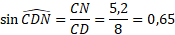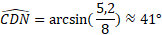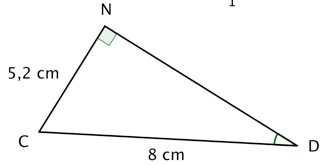 Dans le triangle CDN, ci dessous, rectangle en N, calculer la mesure de l'angle D, arrondie au degré.